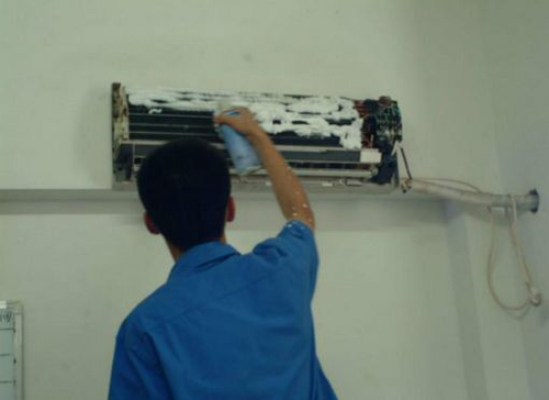 | 洛阳市空调维修师傅给洛阳市用户上门维修清洗空调。 |